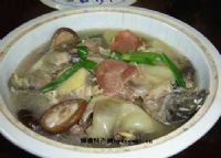 1. 将甲鱼宰杀,先用90℃的热水浸烫,去净表层粘液,再入水锅中烧煮,捞出刮去裙边上的黑衣,拆除鱼骨;