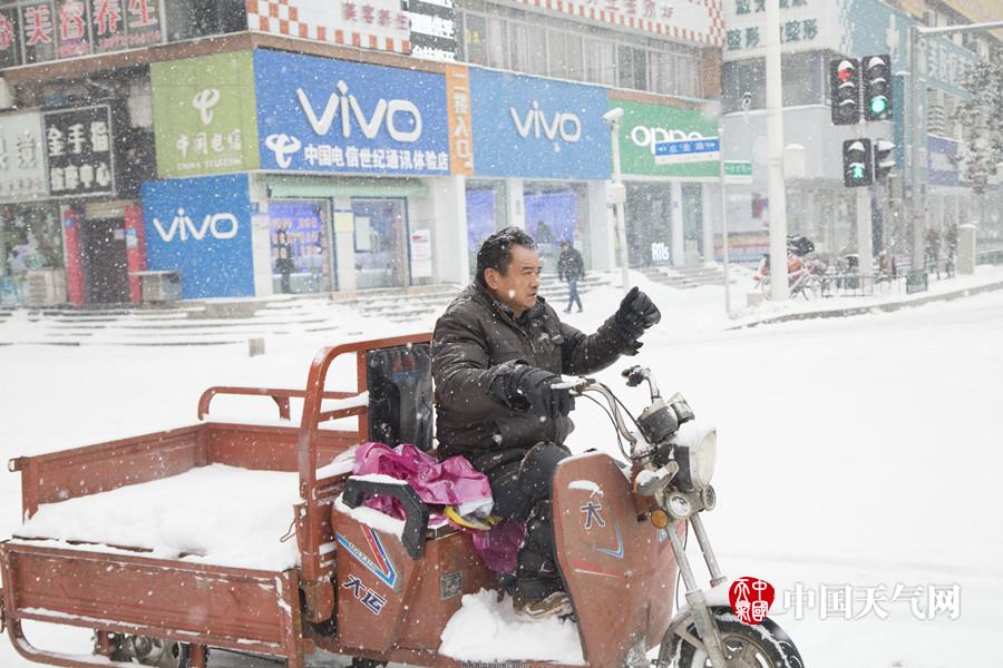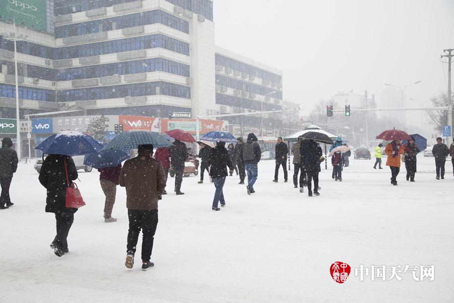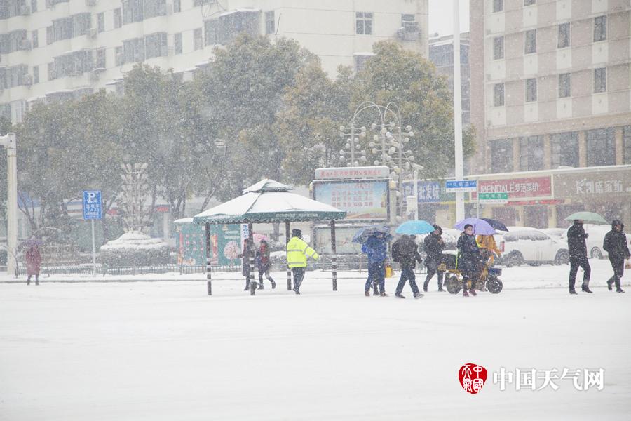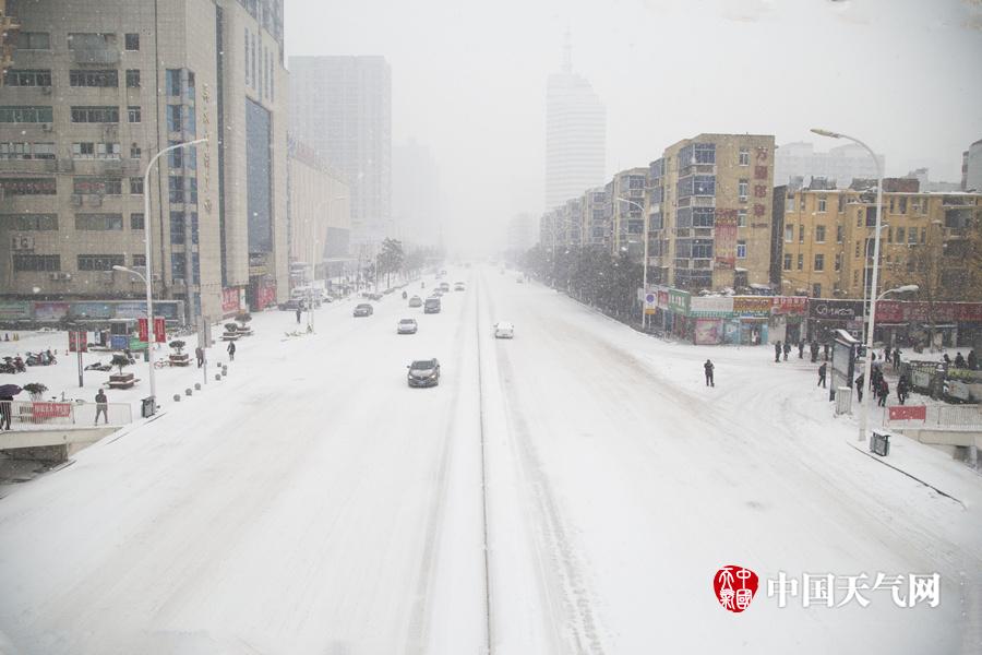 从1月24日开始,湖北襄阳遭遇今年第二场大暴雪侵袭,截至25日14时,襄阳各县市降水量大都超过20毫米,城区积雪深度已超过12厘米。平日里车水马龙、拥堵不堪的长虹路,在雪中显得异常冷清。市民们纷纷选择公共交通或者走路出行。(拍摄:沈建一)