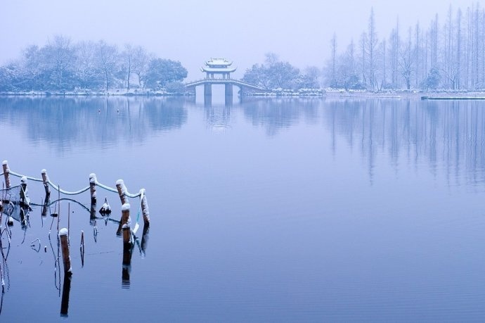 杭州初雪,雪下得太羞涩拘谨,但到底还是下了。一直喜欢海天一色的壮观,今日雪后重游西湖,才领略到湖光山色相映成趣的绮旎。三潭无需月印,只要有远山为衬,一样如诗如画。而花港的妙处,不在观鱼,而在隔湖远眺苏堤来年的春绿。断桥残雪,这样的美景是应该产生伟大的爱情。 (摄影:新浪微博@北极九段_柳承哲)