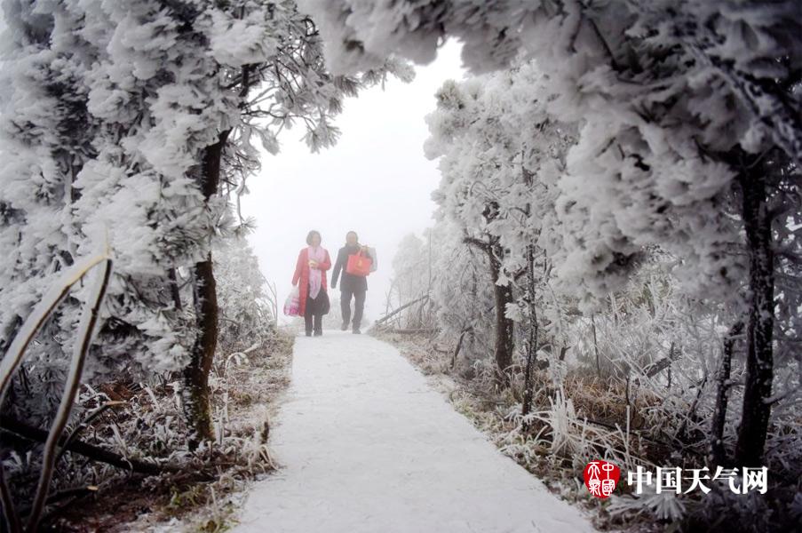重庆酉阳现冰雪世界,游客美景中观赏拍照。 (文/图 陈碧生)