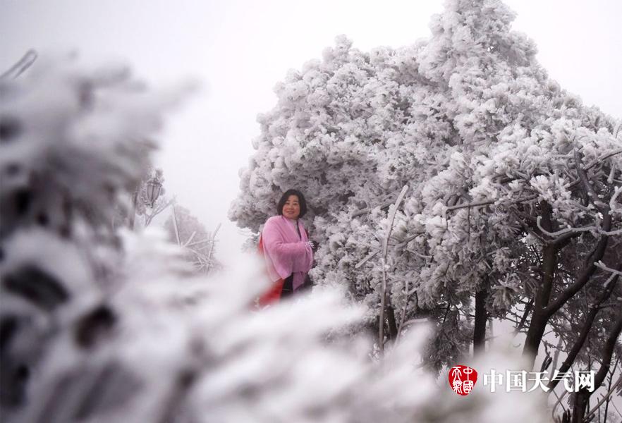 受强冷空气影响,重庆酉阳从1月24日夜晚开始出现降雨降雪,迎来了2018年的第二场冰雪天气,海拨600米以上的地方一夜之间成了一片银装素裹,吸引了不少的游客前来观赏。图为游客在雪景中观赏拍照。 (文/图 陈碧生)