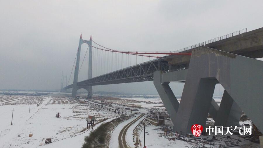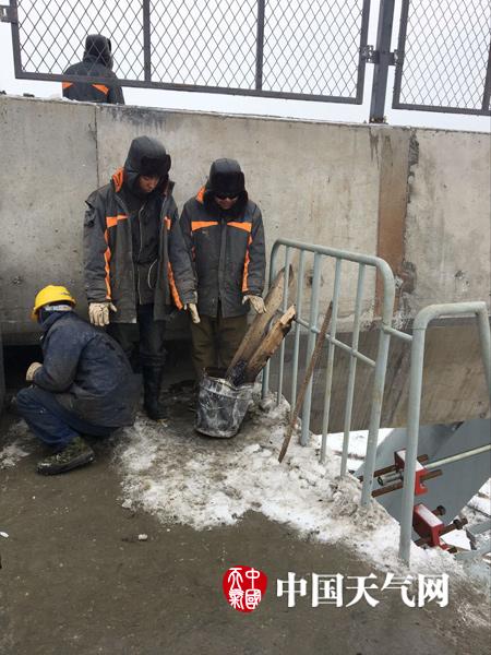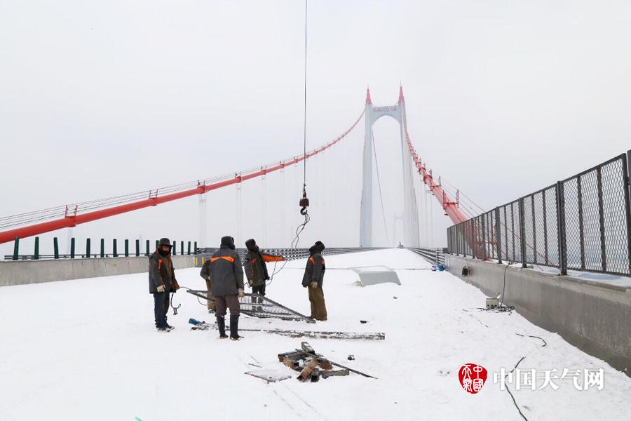 1月28日,积雪桥面施工的车辆。李蜀湘 摄
