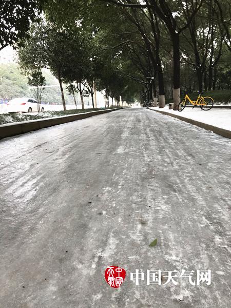 1月29日,暴雪过后的湖北省迎来今年最低温,各地出现了严重的道路结冰现象。图为荆州市主干道积雪已经基本融化,但偏僻小路仍然结冰严重。(拍摄:周莉莉)
