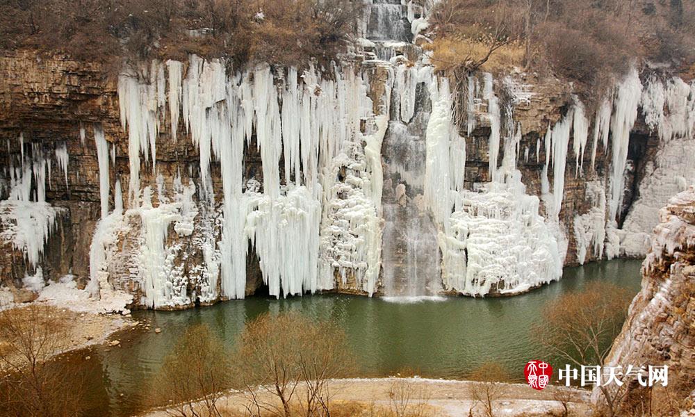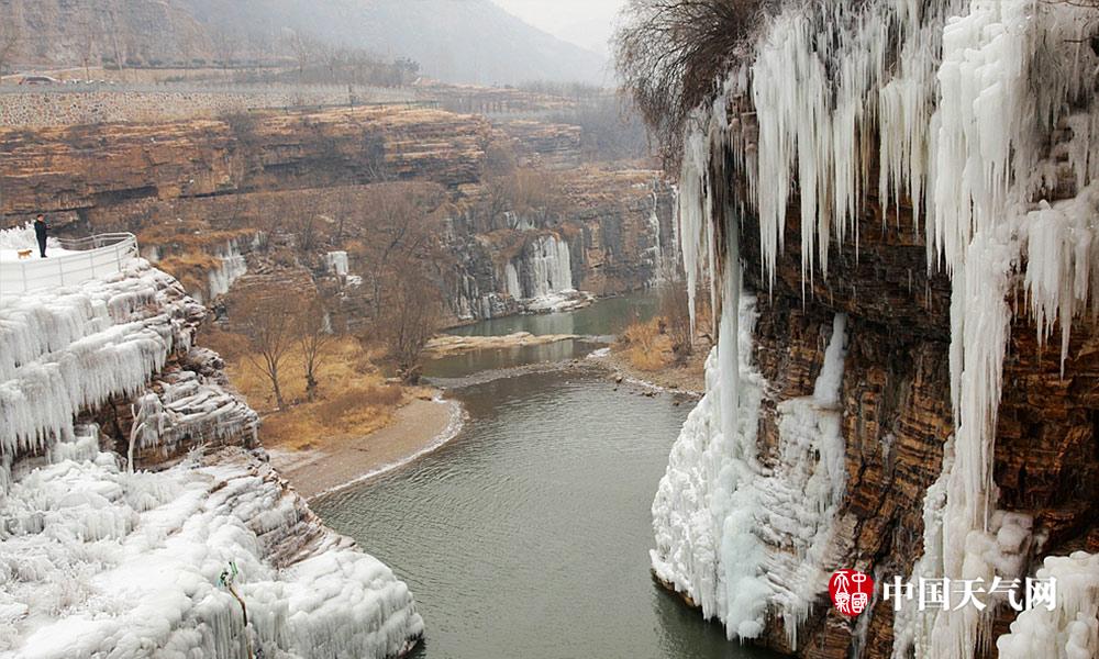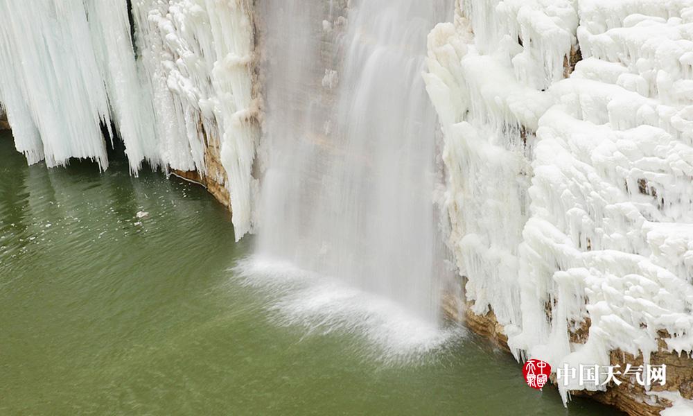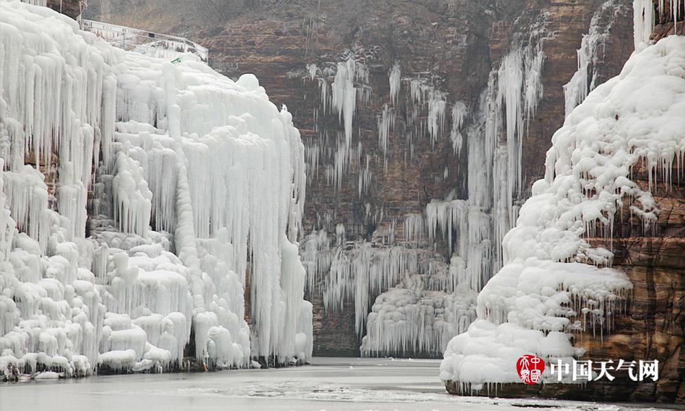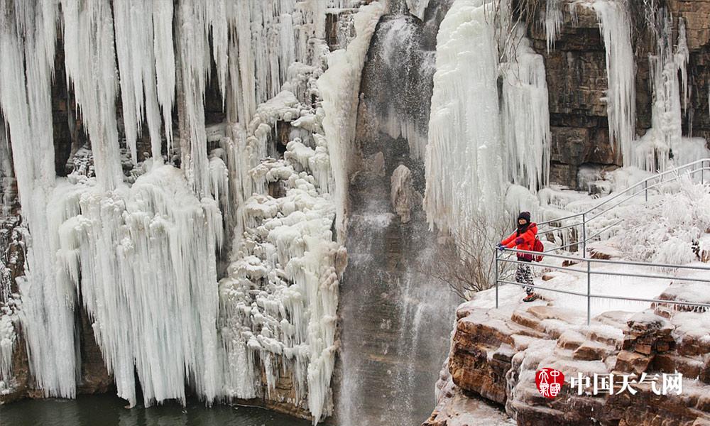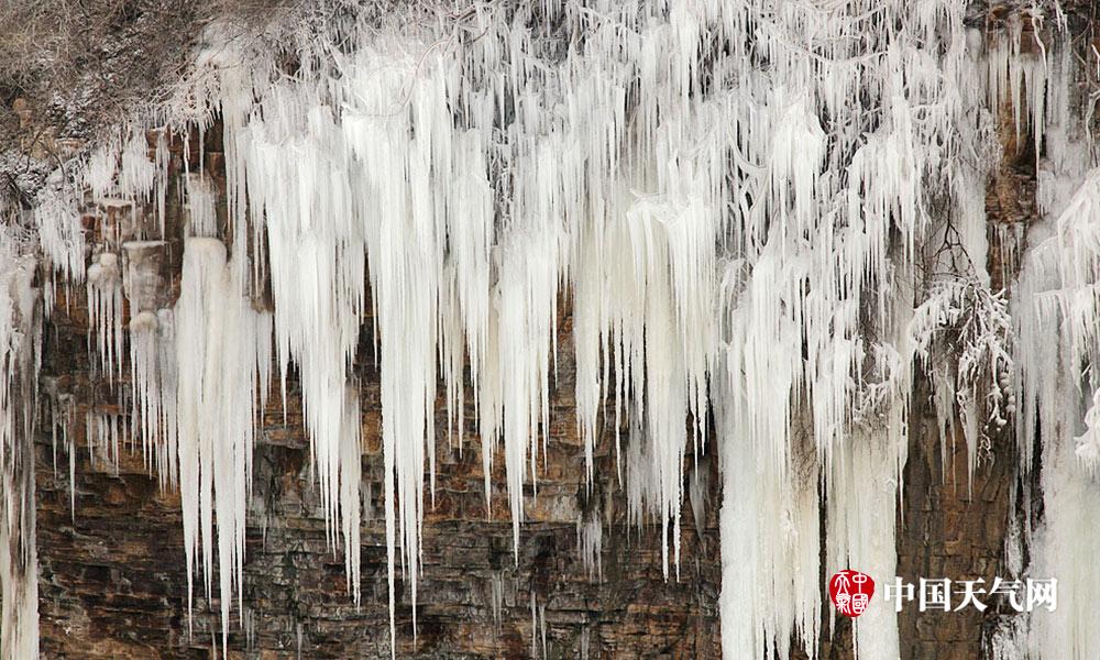 近日河北连续低温天气,白天最高气温也都在零下。河北漳河的瀑布出现结冰现象,形成壮观的天然冰瀑。冰瀑与山体紧密结合在一起,犹如为山体披上了件白衣,冰瀑像雪白的岩石一般坚韧挺拔。人们不禁感叹大自然真是个伟大的雕刻大师。 (摄影/周立新)