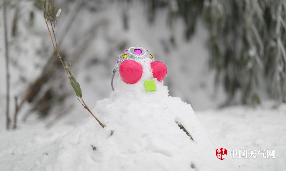 打扮时尚的亲子雪人也很萌。(文/敖婷 图/樱桃长腿小丸子)