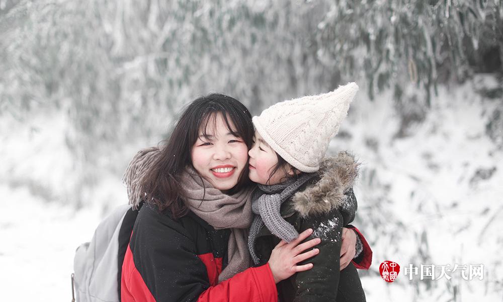 近日,重庆南川金佛山气温跌破-10℃。低温天气使得金佛山景区持续积雪,上山赏雪的游客络绎不绝,玩雪的萌娃宝妈也成为雪地上一道靓丽的风景。 (文/敖婷 图/樱桃长腿小丸子)