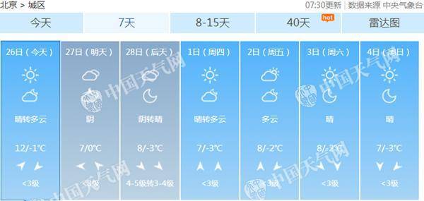 北京今天最高温冲击12℃ 明降温5℃周二起气温平稳