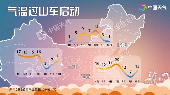 北方城市中,最高气温波动较大的省会级城市前三,分别为兰州、西安、沈阳。像是兰州,7日最高气温为16℃,8日仅有3℃,一天降13℃;而沈阳也很典型,8日的最高气温为12℃,9日又将骤降至3℃,降幅近10℃;西安7日最高温能升到20℃,9日将下滑至7℃。