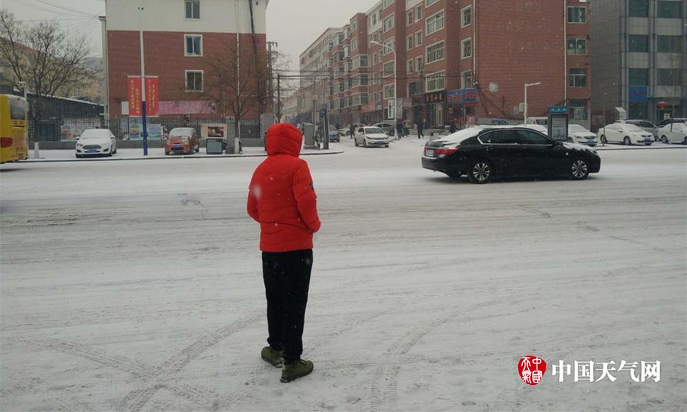 2月26日上午9时,内蒙古通辽市区已开始出现降雪,给群众出行带来不便。(白秀芳 摄)