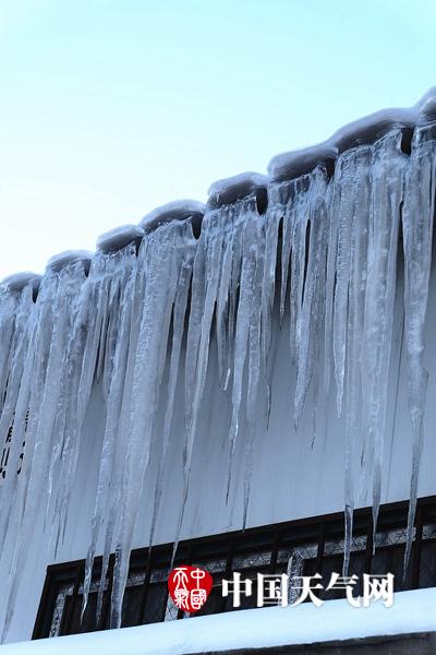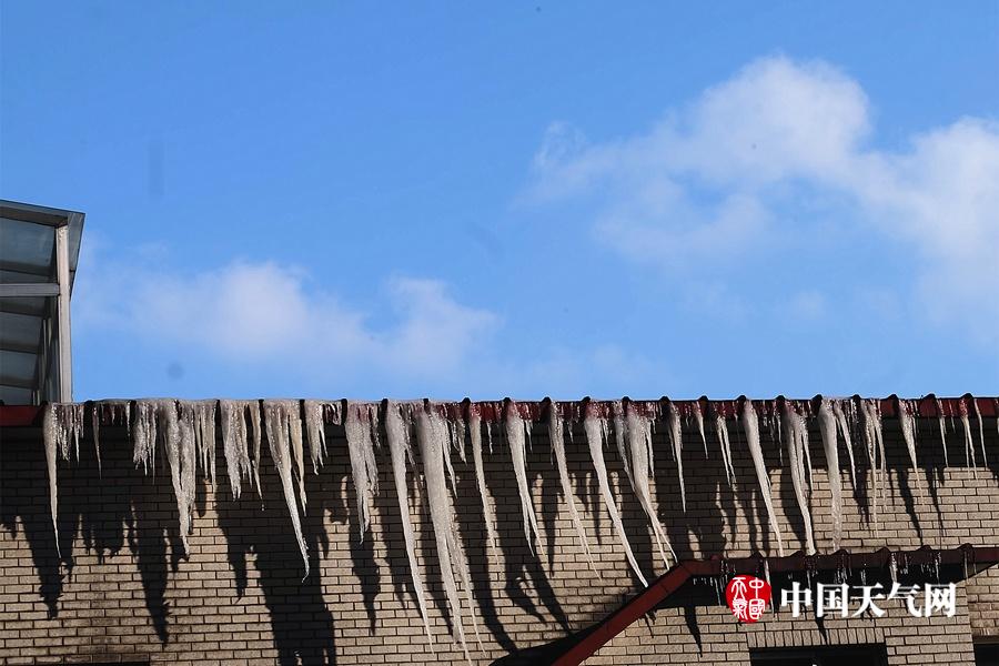 接连两场大雪如棉被般覆盖在哈尔滨市内建筑物上的厚厚积雪,虽然近日气温回升开白天积雪始渐渐融化,但由于昼夜温差较大(最低气温依然达到零下24度),消融时雪水很快就会被凝成冰溜子。回暖不见暖,一排排的冰溜子整齐的排在屋檐下,告诉人们寒冬仍在。(图文/吴胡荼)