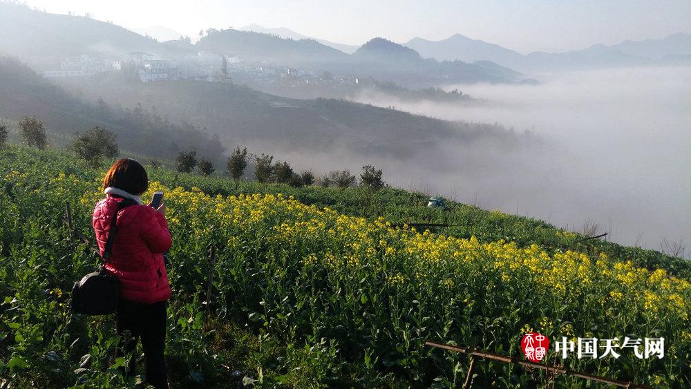 油菜是歙县旅游经济的标杆产业,目前天气转暖,气温上升,歙县油菜花田里部分油菜已经开放,预计本月底将超过十万亩花海盛开。(摄/仰时威)