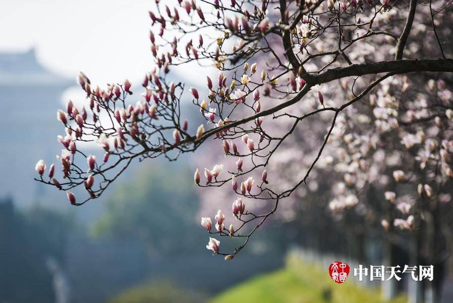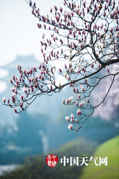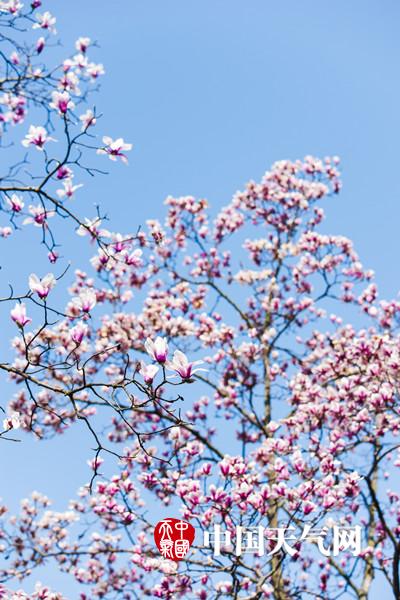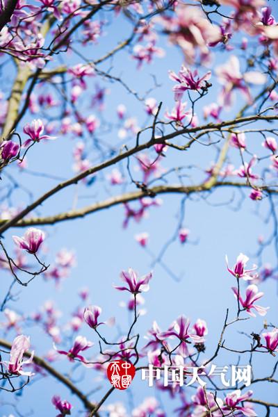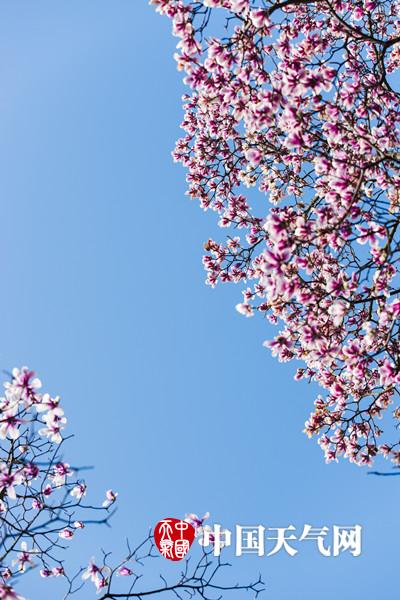 近日,南京天气晴好,持续升温,在融融春意下,春花都开始绽放。图为南京雨花台的玉兰花悄然绽放,白色的花朵在蓝天的映衬下,美的像幅油画。(拍摄:方飞 文字:陈睿)
