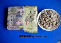 奶油五香豆以本地绿色蚕豆为原料,伴以茴香、桂皮、精盐、白糖、香精奶油等佐料精制而成。其特点是微带甜味,清醇可口、色泽光洁,回味久长,能生津开胃