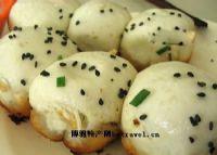 做法:以发酵后的精白面粉作皮,用猪夹心肉末和肉皮冻加香油等多种调料作成馅心。包捏好的馒头尖上还要蘸上葱花和芝麻,表层刷上素油,放入油锅中煎熟。