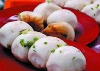 鸡肉生煎馒头是上海的特色风味小吃。这种小吃是以发酵后的精白面粉作皮,用熟鸡脯肉丁、猪夹心肉末和肉皮冻加香油等多种调料作成馅心。包捏好的馒头尖上还要蘸上葱花和芝麻,表层刷上素油,放入油锅中煎熟。该品形态饱满,上半部有黄澄澄的芝麻和碧绿的葱花,松软适口。下半部则酥脆可口,馅重汁多,越吃约香。此小吃以上海市王家沙点心店制作的最佳。