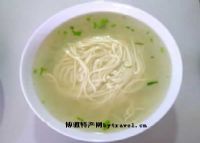在碗内放熟猪油7.5克、白酱油15克和少许青蒜花,捞入面条,舀入沸滚的鱼汤即成。