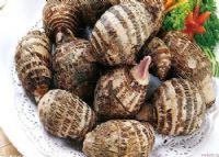 1、感观特征:块茎呈近球状或呈不规则卵形,表皮黄褐色,有轮纹,肉乳白,质地致密。一般商品块茎单个重20~100克之间,其单体的大小与土壤、肥水、植株长势的差异都有很大关系。如作多年生栽培,年限越长,块茎单体越大。去皮后的海门香芋块茎可以红烧、清煮、煲汤或与荤菜搭配。有豆的清香,久煮不糊,粉而不散,入口清香微甘,食后回味悠长。 2、内在品质:经测定每百克鲜海门香芋含蛋白质>5.0 克、淀粉>21.0克,氨基酸总和>3.0%。 3、安全要求:海门香芋质量安全按照江苏省南通市地方标准《无公害食品 香芋生产技术规程》(DB3206/T047—2004)标准要求执行。产品符合《农产品安全质量无公害蔬菜安全要求》(GB18406.1-2001)