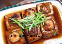 清蒸鸭饺;原料:活鸭一只(重约2000克)、冰糖25克、酱油25克、绍酒30克、八角5克、精盐10克、葱25克、姜20克。(色香味: 呈长方形块、酱红色,味鲜肥嫩,用筷一拨即肉骨分开,汤汁清澄,碗面浮有金黄鸭油 )
