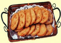 外地人虽然也有这种吃法,但绝没有金湖普遍,做法也不及金湖的细致。藕去皮洗净,切成如纸的薄片,切时要特别小心,必须两片连在一起,这样才便于包馅。做肉馅也有些讲究,选料既不能太肥也不能太瘦。将肉剁成糊状之后,放时葱、姜、盐、糖、味精等佐料,然后把肉糊夹在两瓣薄藕片中。藕夹包好后就是和面,面要调成稀稠均匀的面浆。面浆里要掺进少量的矾和碱,这样煎出来的藕夹才又酥又脆。若是在面浆里加上两个鸡蛋,煎出来的藕夹不仅鲜嫩,而且黄澄澄的更好看。面浆调好后,把藕夹放在面里沾滚,让面浆糊住藕孔,然后放进油锅里煎炸。煎藕夹对火功十分考究。首先要急火将油烧滚;火太弱,煎成的藕夹就不酥。待藕夹炸到八成熟,再捞起放在平锅里煎炒,将油炕干起脆,直到呈现出黄里透红的颜色,加上香料和白醋,这藕夹便做成了。