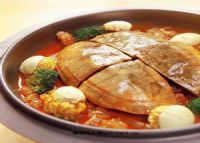 淮安市东南水乡以鱼米著称,水乡湖面滩涂广阔,是甲鱼生长繁殖的天然优良场所。朱桥镇早在本世纪内30年代初就以烩制甲鱼著称,距今已有五六十年的历史。朱桥甲鱼的烩制方法:取甲鱼一只,以甲盖青色为佳,用开水去皮、洗净、剖腹、去内脏、入锅汤、拆骨、切成肉块,再下锅油炒,拌以姜葱、酱醋,然后取出,放入鸡汤,煮沸后放入淀粉勾欠,装碗时放入皮蛋、胡椒即好。此菜营养丰富,肉质细嫩、味道鲜美,实为筵席之珍品。此外,还可清蒸、清炖、红烧,风味各异。