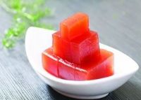 水晶山楂糕历史悠久,始于汉而兴于明清,至今已有两千多年的历史。相传,西楚霸王项羽兵败垓下以后,那些忠于楚霸王的卫士一时不知项羽下落,有的人来到项羽老家下相(今宿迁)打探消息,得知汉军已略城,便在城西北一个村庄住下来。因途中饥饿采些山楂果充饥,到此还剩下一些,吃罢丢下果核,不料第二年竟长出山楂幼苗,这就是俗说中的山楂果,也称“山里红”。后来,这个被项羽卫士住过的村庄便称为“探楚庄”,从那时候起,探楚庄人便有了种植山楂的习惯。群众把山楂果去核搓成果泥做成糕,用来进贡楚霸王,以寄托思念之情,故山楂糕也称“霸王糕”。
