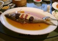 腴醇厚,香味扑鼻,非一般鱼类能够媲美。江都人吃鲥鱼多用红烧,但红烧难尝膏脂风味。所以许多人都喜欢清蒸,加上芽姜、笋尖,配用猪油,那脂质尽融于汤,吃起来嫩而鲜,肥而美,食鱼肉滑溜细腻,品鱼汤肥腴醇厚,真有难以言表的妙处。烧鲥鱼一般不去鳞,有的人不知鲥鱼鳞可食,待那有鳞之鱼奉上餐桌以后,嫌有鳞而不食,结果大呼上当。鲥鱼性烈,一般触网不久即死,所以世人吃活鲥鱼者为数寥寥。有人曾和渔家一起到三江营捕鲥鱼,享过“近水楼台”之乐。他们大概是为了显示渔家独特的乐趣,未捕鱼前已将锅置于船头,拉网时碰上刚刚触网的活鲥鱼,随手拈来,立即剖肚取肠,洗刷干净随即下锅。也不过是河水煮河鱼,再搁了一点盐而已,但那种出水鲜是一般人难以享受到的。