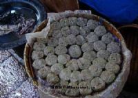 扁圆形的芽麦塌饼又甜又软又糯,青色的皮面上有一层黄色的菜油,色香味俱佳,为清明时分绝佳的时令食品。