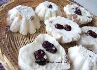 定胜糕色是湖州的名点小吃,呈淡红,松软清香,入口甜糯。主要是将米粉放入定胜糕模型内,摁实,面上用刀刮平,上笼用旺火蒸二十分钟,至糕面结拢成熟取出,翻扣在案板上即成。