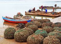 闽江口的乌猪港东岸门和川石五虎门的水底岸礁盛产肉味鲜美,营养价值极高的黄牡蛎,牡蛎是群木妻浅沙底的贝壳斧足类软件动物。其体外负有二个贝壳,壳长5公分左右,高约9公分。右壳顶长稍曲,不平如山形,左壳扁平,宛如右壳的盖子,壳表面淡黄有紫色的放射线数条,内面光滑色白,常以扁平的一面附在水底岸礁之上繁殖,累累相联结,成串成片。动物学上载,牡蛎有20多种,福州地区常见的食用牡蛎,按其色与味只有黄蛎(野生石 虫豪 )和北蛎(插竹养殖的竹 虫豪)两种。前者肉色淡黄,野生,个体较大。后者色绿味浓,个体较小。连江马鼻一带多产小牡蛎,俗称北蛎,近来引进的太平洋牡蛎,个体也很大,多是人工插竹养殖的。牡蛎繁殖迅速,长年均有。肉可以食,壳可烧灰,作建筑材料,牡蛎性滋阴降炎,可以入药疗病,药效类似燕窝、白木耳,肺病患者常饮炖牡蛎汤汗中以溪解病情,价廉易得。所以川石、东岸居民,多靠捕捞牡蛎为生。捞牡蛎方法有两种:川石人好水性,就只带一根蛎锹,潜入海底,锹下蛎旁,一大团一大团扛在肩膀上浮出水面;东岸人则在船上耙捞,各家自备小船,两头两锚固定水面,人站在船上用以长竹杆为柄的铁耙往海底耙捞,捞上蛎房放在船上。每年端午节前后两三个月是耙捞牡蛎的旺季,东岸门水域布满小船,可热闹了。黄牡蛎虽是野生的水产物,而东岸门水底并非自古就是盛产这种贝壳类。据传元朝的时候,这条水道泥沙淤塞,芦苇丛生,水流不畅,不宜黄牡蛎在这里生长繁殖。直到明朝建立的前一年,明太祖朱元璋命汤和为将,自明州(今之温州)由海道进攻福建,明军避开浪高水险的五虎口,由乌猪口至东岸门这一线,火烧芦苇,挖开淤泥,船队趁大潮冲进闽江,直扑福州城。从此以后,乌猪港潮起潮落,通畅无阻。东岸门才有了适宜黄牡蛎生长的条件,故于明洪武以后,黄蛎在这一带逐渐繁殖起来。又一说朱元璋率兵进攻福州时,船过东岸门,癞痢头发痒,双手抓痒,丢下似“白鹭屎”的疱痂,变成了黄牡蛎。这是传说,其实朱元璋并没有来过福建。东岸门的黄牡蛎算是大自然恩赐的水产资源,捞牡蛎养家糊口至今仍为东岸人最可靠的活路。( 连江县)