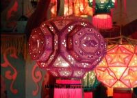 皤滩花灯以其独特的造型与精美的工艺闻名遐迩。花灯不论大小,灯身都没有骨架,由十多片刺有各种花纹图案的纸花粘贴而成(最多达58片),人们俗称它为无骨花灯。有一种叫作珠蓝灯的,是用一种称作水上浮的极细的绣花针刺绣,是敬献给皇帝的贡品。