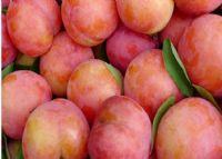 产品简介:诸暨红心李果形圆而稍扁,皮薄呈绿色,果肉近核部分紫红,核小,肉多,水足,味甜而略带酸,清香爽口,营养丰富。平均单个重60克左右,青果时外有一层白色粉状物,成熟后消失。鲜果畅销北方各省市,并远销海外。加工李坯(初制品),主要运销福建、广西以精制果脯。1989年,诸暨有李林8500亩,年产李1400吨。