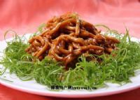 特色:此菜翠绿酱黄,色采鲜明,肉丝鲜嫩,甜辣爽口,有浓郁的葱香味。