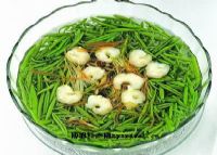 (一)将炒锅置旺火上,加入清水500克烧沸,下莼菜,待沸后立即捞出,沥去水盛在汤碗内。