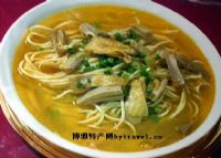 面的种类有很多。就家庭来说用一般的挂面就可以了。有条件的也可以用手工擀出来的面。把面放到水中煮,等到煮开后往锅里浇上一小碗水,再煮到水开就OK了。