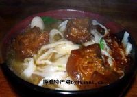 2、炒锅上火烧热,下油,放入红烧肉、葱、姜爆香,加调味料,添汤,下入泡发好的木耳、香菇片,见汤沸,下入菜心,离火,倒入面碗中即可。