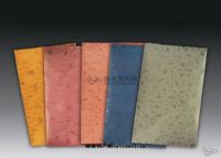 粉蜡笺属纸品中的特种纸张,具有防水、防蛀、抗老化、耐折叠且不落粉、不断裂的特点,在封建社会,多作为皇帝颁发诏书、下达圣旨与宫廷书定专用。如唐中书褚遂良的《枯木赋》、宋徽宗赵佶的草书《千字文》所用皆粉蜡笺。随着封建社会的终结,粉蜡笺的制作也随之失传。巢湖市掇英轩文房用品厂经过潜心钻研古代文南献,借助反复试验,并在故宫博物院、北京荣宝斋、泾县宣纸博物馆的大力协助和提供样品的基础上,通过在定制的宣纸上施胶、染色、施粉、施蜡等十几道工序而试制成功,得到中国科学院、文化部、中国文联的首肯,研制领衔人刘靖已被中国艺术研究院聘为民间艺术制作研究员,所产粉蜡笺及其姐妹产品“金银印花笺”、“泥金笺均已面市。”