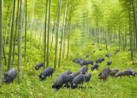 2品种特征圩猪体型中等偏小,结构匀称,体质较细致。头中等大小,额部皱纹纵横不一,深浅不等,大致呈“菱形”,额心常有长毛一丛,皱纹浅趋于纵行而嘴筒稍长的俗称“青鱼头”,额纹深趋于横行而有的发展到面颊及嘴筒的,其嘴筒较短,俗称“狮子头”。数量以青鱼头较多。耳大,耳根软、下垂、稍向前伸、长过口角。胸较宽,背腰稍下凹,母猪腹大下垂,妊娠后期多数坠地,臀微斜。前肢直立,系短而直,后肢多卧系。尾根粗,尾长达飞节,末端长毛丛生,俗称扫帚尾。全身被毛黑色,乳房和0发育良好,分布均匀,多成对排列。
