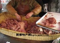 狗肉,南坪一带的狗肉是出了名的。尤其是刚煮出锅的热狗肉,味道绝对鲜美。在南坪,狗肉是宴席必备的凉菜,最地道的吃法就是在狗肉上面撒些花椒,不但吃不到麻,而且更能突出狗肉被誉为“香肉”的特点。