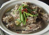 把骨头熬透,加百叶,于辣椒条及腰豆调好即成。
