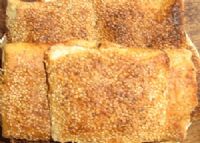 大脆本市秦栏特产,香脆可口口。其制作工艺比较简单:将面及少量油酥、揉和后,搓成鸡蛋大的面馒,略撒芝麻,待烧饼下市后,撤去炉内炭火,密巾于炉内,利用余热烘成,每炉可贴几十个,次晨取出,即可食用。( 天长)