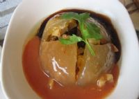 彰化肉圆的主要材料是特选番薯粉(清明节后产制),上等猪肉、香菇、蛋黄、冬虾、竹笋配葱、玉桂香料。经过配制炊蒸,即是圆形表皮润泽富弹性的半成品。放入不温不燥的油锅炸上数分钟,捞起浇洒特制的佐料——糯米、花生、芝麻、糖搅拌而成的甜酱,加上上等壶底酱油。吃起来感觉皮脆馅香,味道可囗。吃完后还付送一碗清淡美味的骨汤(用香菇头、大骨经过二小时的慢炖细熬炼成的)。