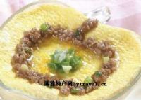 将鸡蛋加少入许食盐和适量温水,用筷子反复打散,然后把猪肠一头用线扎紧,将蛋从另一头灌入,满后用线扎牢。之后握蛋肠一头的线,放在锅中约50度的水内来加摆动,待至水沸时,立即将蛋肠取出,切成半寸长的小段,备用。烧汤时,将肠段投入,佐以香菰、红菰等配料,加少许味精、食盐、葱花等,煮至蛋肠两头呈磨菰形时,起锅即成,清淡爽口,为宴客佳肴。