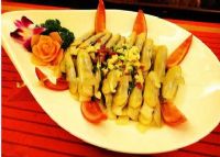 剑蛏选材以精小为佳,能吃上“小剑蛏”是种福分,口感“鲜、嫩、脆、爽”,当你吃上第一口,就再也停不下来,直到把整盘消灭殆尽。剑蛏是自然独赐予霞浦百姓的补品,它富含蛋白质、钙、铁、维生素A等营养元素。
