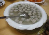 鱼丸为现代人桌上便菜,平潭鱼丸因注重选料和制作工艺而名闻遐迩。平潭鱼丸多以鲜黄鱼、马鲛鱼、鳗鱼、小参鲨为主料。剁碎鱼肉。加适量姜汁、食盐、味精,捣成鱼泥,调进薯粉,搅匀后挤成小圆球,入沸汤煮熟。