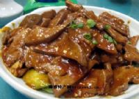 一、将鳍肝片成长约1寸半,宽约7分的薄片,放入用酱油、酒、蛋白调成的卤内拖一拖,再一片片地滚满干菱粉。二、开热猪油锅,将猪肝放入拉一下,拉时,油锅要热,动作要快,以免猪肝出水而发轫,拉好后,倒去锅内的油,随即加入糖、葱、麻油、同猪肝一道翻一翻,起锅装盘.
