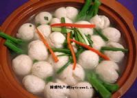 七星鱼丸有个传说:古时候,闽江之畔有个渔民。一天,有位商人搭他的船南行经商,船出闽江口,进了大海,正遇台风袭击。船入港湾避风时,不幸触礁损坏。修船拖误了时间,粮断了,天天以鱼当饭。商人叹道:“天天有鱼,食之生厌。能不能换换别的口味?”船妇说:“船上粮已断,唯有薯粉一包。”心灵手巧的船妇便把刚钓到的一条大慢鱼,去皮除刺,把鱼肉剁细,抹上薯粉,制成丸子,煮熟一尝别有风味。事后,这位商人回到福州,便在城里开设一家“七星小食店”,特聘这位船妇为厨师,独家经营“鱼丸汤”。开头,生意并不兴隆。一天,一位上京应考的举子路过此店就餐。店主热情款待,捧出鱼丸。举子食后,颇觉味道极美,便题赠一诗: 点点星斗布空稀,玉露甘香游客迷;南疆虽有千秋饮,难得七星沁诗脾。店主将诗挂在店堂上,宾客齐来观赏。从此生意兴隆,小店日日春风。“七星鱼丸”也从此得名。