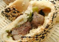 葱肉饼,福州传统风味小吃。以面粉为主料,以猪肥膘肉、葱花、生芝麻为辅料制成的一种烤炉酥饼。做法是:把面粉揉成饼皮,肥膘肉丁用白酱油、味精、精盐、五香粉或椒盐、胡椒粉等佐料腌醉做成馅料,包馅时塞进大把葱花,饼面上撒入生芝麻,贴炉烘熟。 福州传统风味小吃中还有一种叫虾干肉饼,制法与葱肉饼相似,形状大小与光饼相同,加虾干碎、肉丁、椒盐等为馅,贴炉烤制而成,香酥可口,已有三四百年历史。