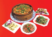 粉蒸鱼的由来缘于夫妻俩的斗智。相传清末,兴国一罗姓船工常到河边捕鱼,日子一长,鱼也吃腻了。一天,他对妻子说,若能做出一道与往日不同的鱼菜,奖她一对镯子。罗家女人想:往日,不是煎就是煮,这回只有试一试蒸了。于是她在蒸甑里面放上芋头、茄子、豆角之类的蔬菜,拌上米粉、作料,用猛火攻之,待蔬菜熟了,拌好油、盐、生姜等调成的糊汁,洒上葱花后上桌。等木甑上桌掀开木盖时,鱼味四散,夹入口中,活鲜麻辣俱在,不但米粉鱼好吃,下面垫底的蔬菜因沾了鱼味也很可口。后来,此法传开,人们把木甑改成竹制的蒸笼,做法更为简便。现在此菜在兴国广为流传,再加上4个具有客家风味的小菜,就成了毛泽东亲自命名的“四星望月”。