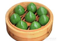 由艾草叶和米粉按比例擀和成均匀的粉团,放入蒸笼用猛火蒸,蒸到米果油光发亮,摸不粘手即熟透了,这时的艾米果看起来绿绿的,油油的,亮亮的,闻起来香气沁脾,令人垂涎欲滴,吃起来更是油而不腻,粘而不湖,脆而不松,口感甚佳,真是色香味形俱全。