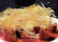 该糖丝色白,细如发丝.松脆滑润,香甜可口,入口即融。